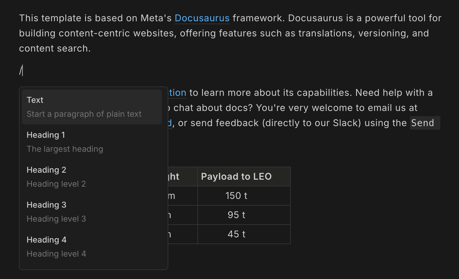 Take editing a simple markdown table, for example—it's a frustrating, error-prone process regardless of your technical expertise. Making content editing easier is such a desired feature that people started asking for it as a Christmas gift on the Docusaurus forum.